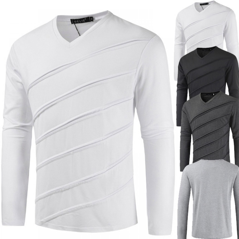 Fashion Casual Summer New Hollow Out Long Sleeve V-Neck Solid Color T-Shirt