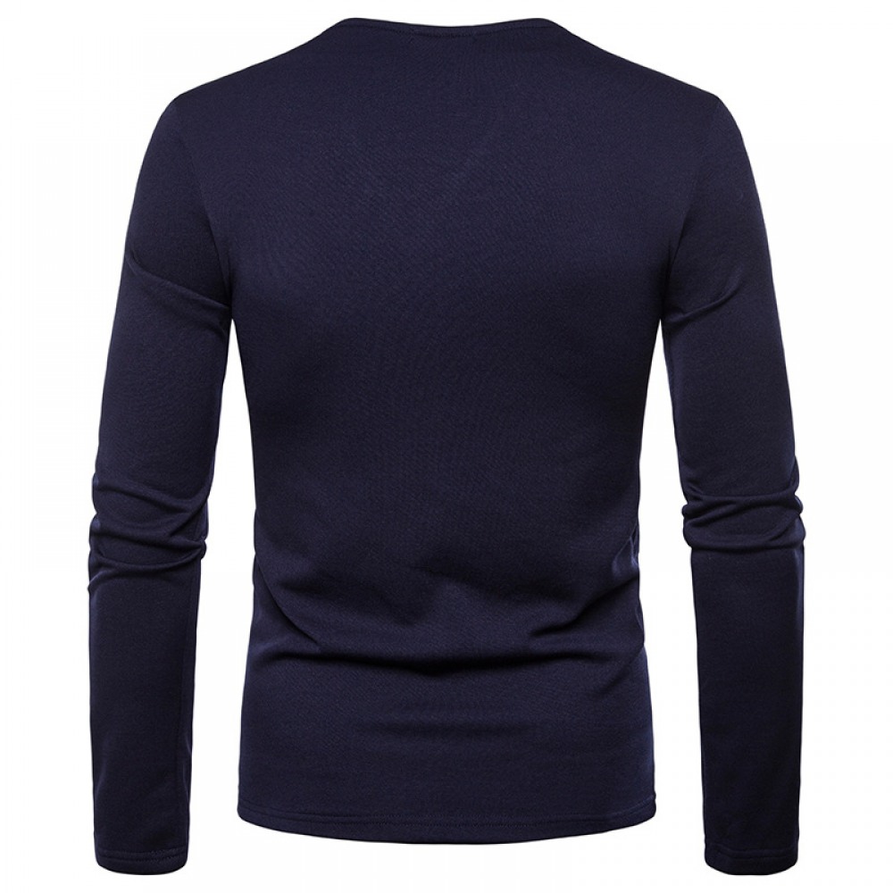 New Men's Long-Sleeved T-Shirt Slim Collar Solid Color Shirt