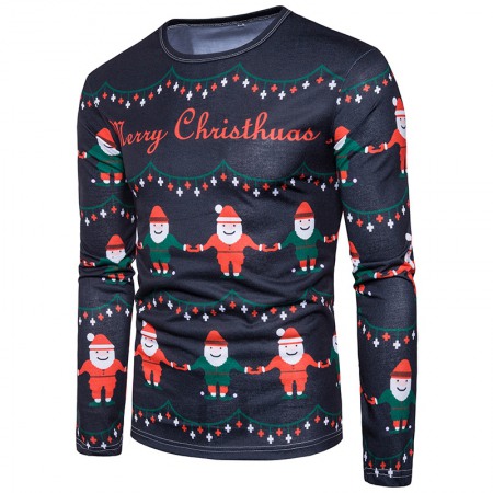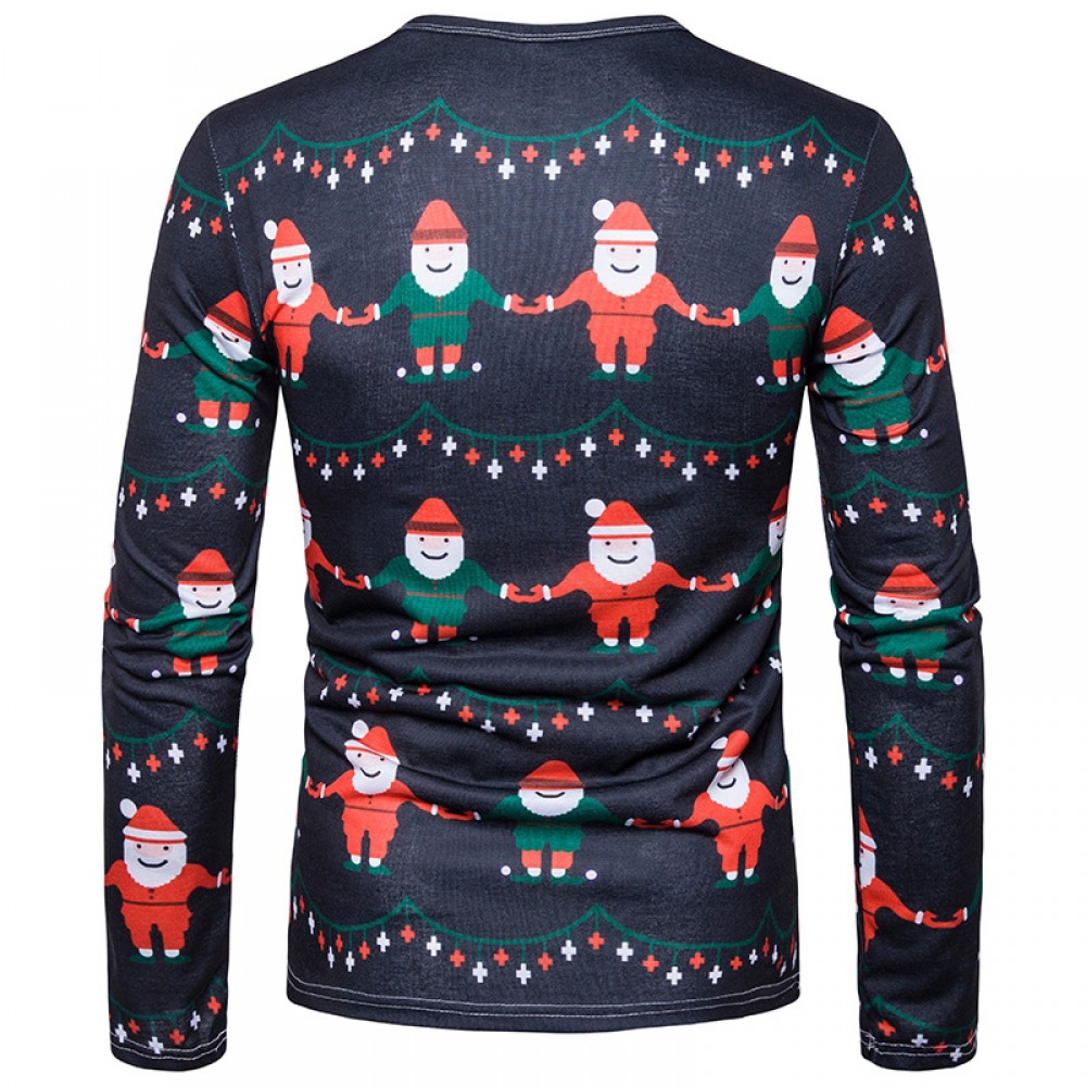New 3D Personality Printing Fashion Men's Christmas Long-Sleeved T-Shirt