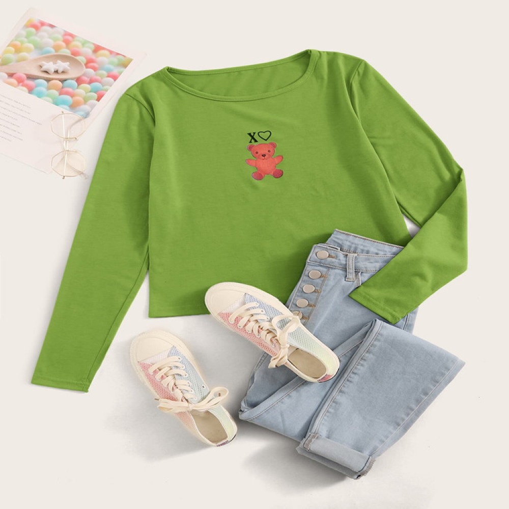 Hot Style Jacket Cute Cartoon Printing Long-Sleeved T-Shirt Women