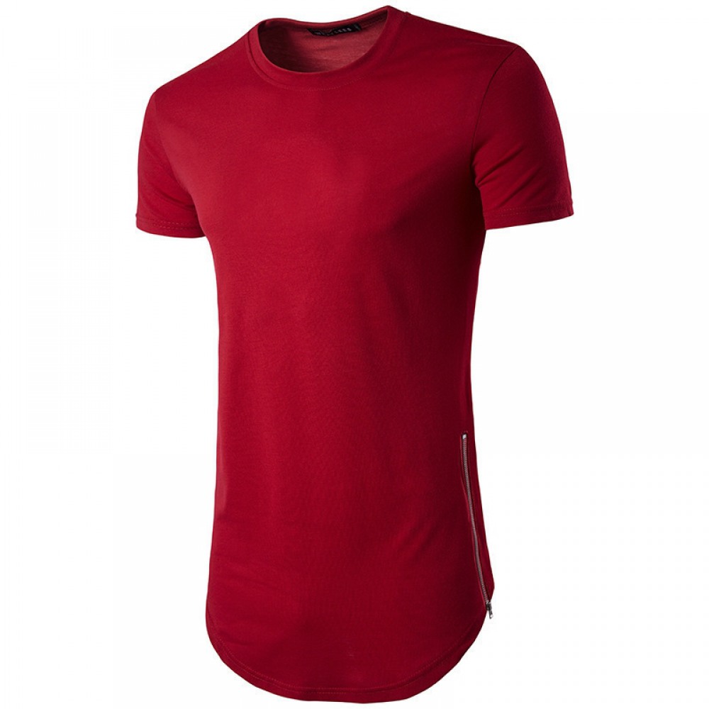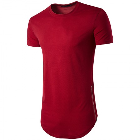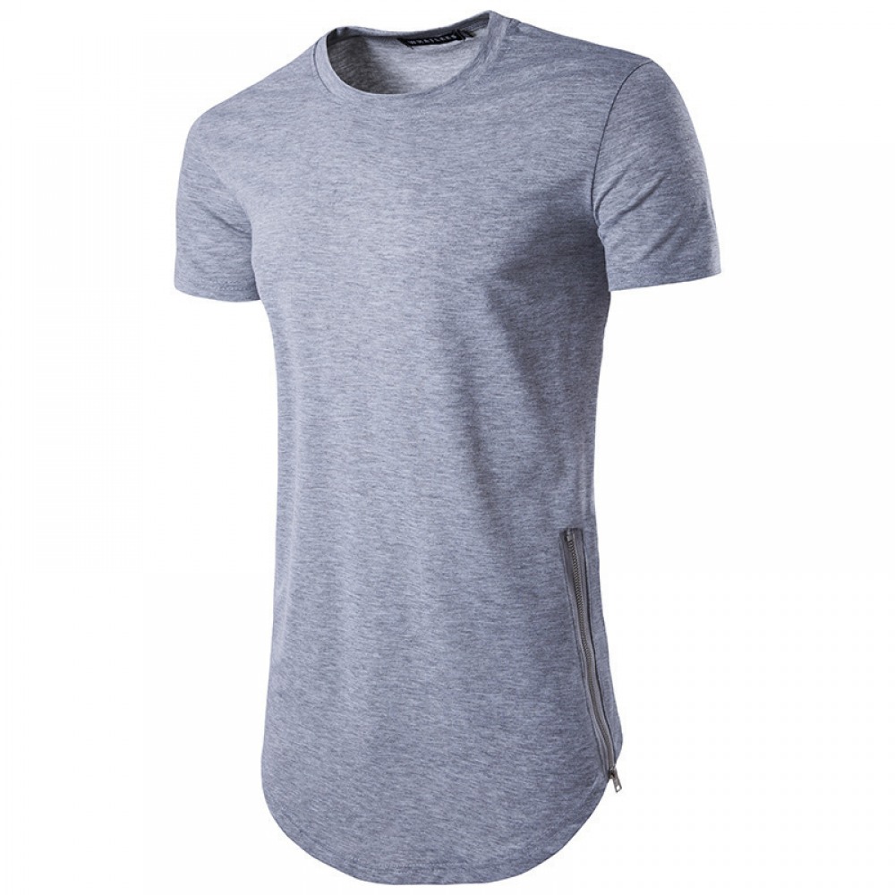 Men's High Street Style Double Zipper Long Round Neck T-Shirt Multicolor Large Size Short-Sleeved T-Shirt