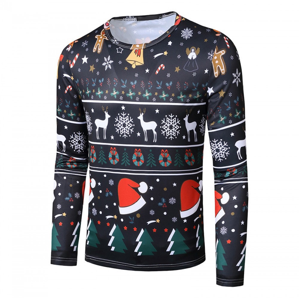New 3D Personality Printing Fashion Men's Christmas Long-Sleeved T-Shirt