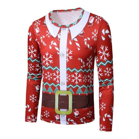 New 3D Personality Printing Fashion Men's Christmas Long-Sleeved T-Shirt