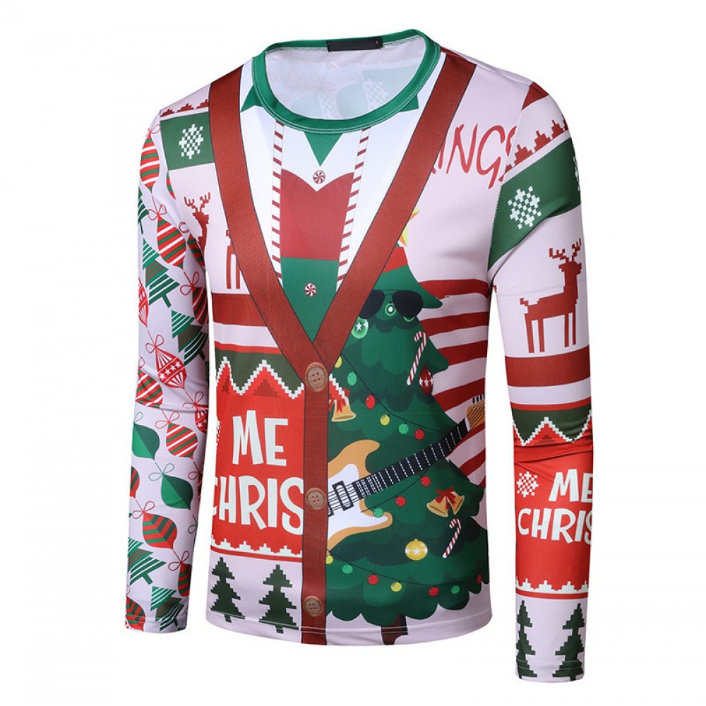 Men's New Christmas Round Neck 3D Personality Printing Long-Sleeved T-Shirt