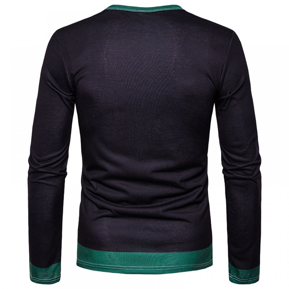 New Men's Plus Size 3D Irregular Printing High Neck Long Sleeve T-Shirt Bottoming Shirt