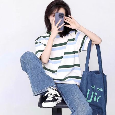 Turtleneck Cotton Modal Mid-Sleeve T-Shirt Women's Slim Short Top