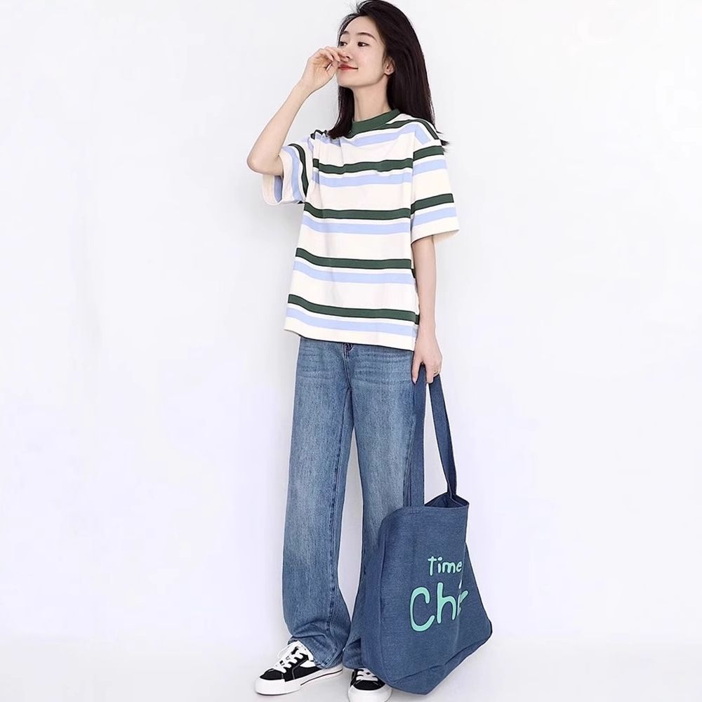 Retro Straight Shoulder Short Sleeve T-Shirt Women's Summer Slim Top