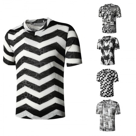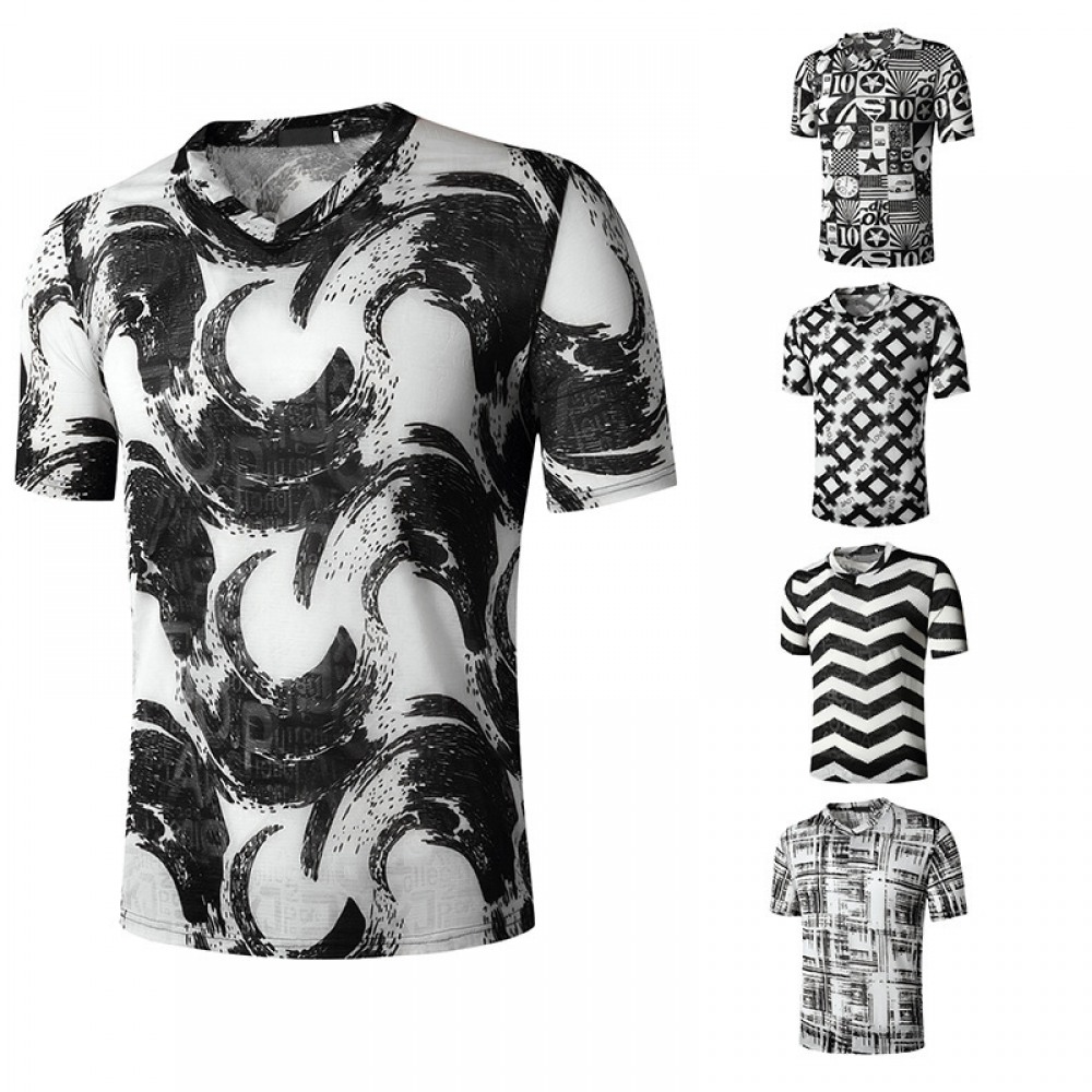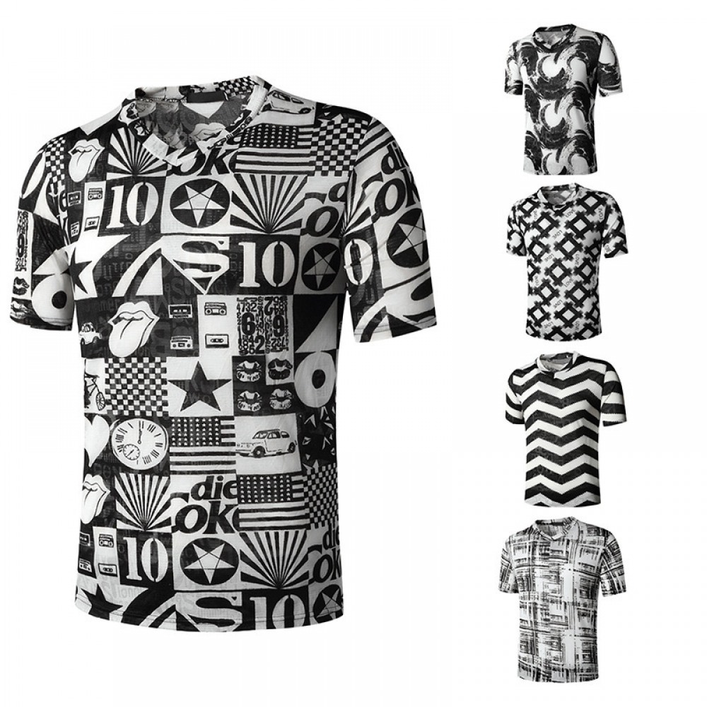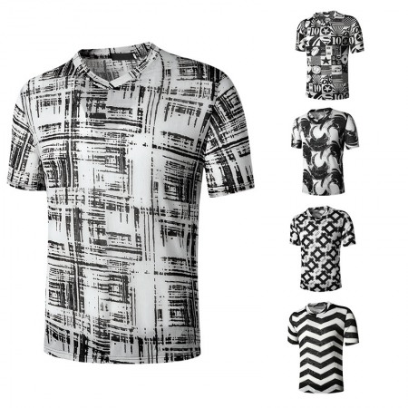 Flat Summer New Men's Round Neck Fashion Short-Sleeved Ethnic Print All-Match T-Shirt
