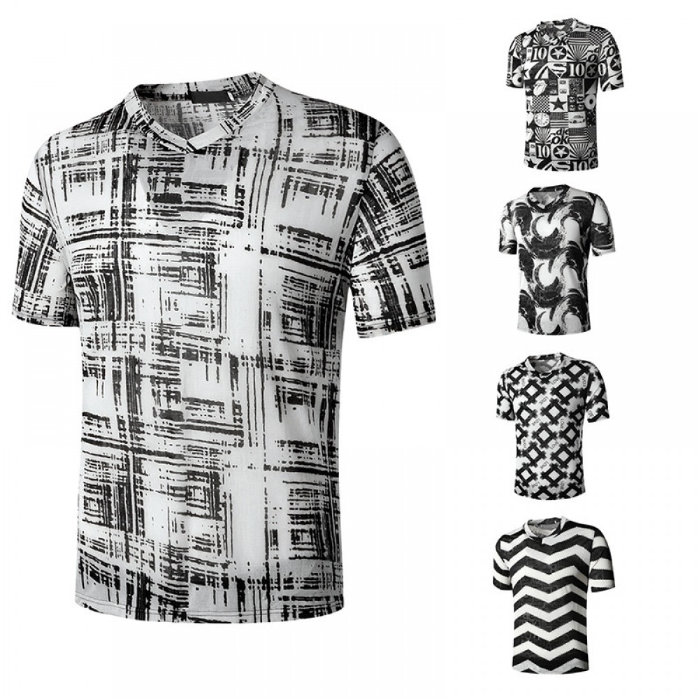 Summer Men's English Jacquard Fashion V-Neck Short-Sleeved T-Shirt