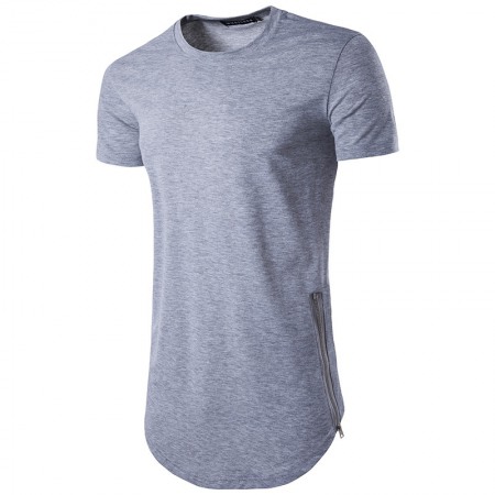 Summer Men's Personality High Street Style Double Zipper Long Round Neck T-Shirt